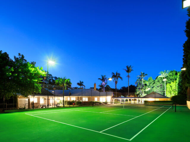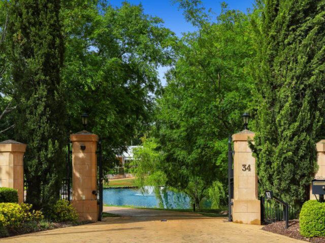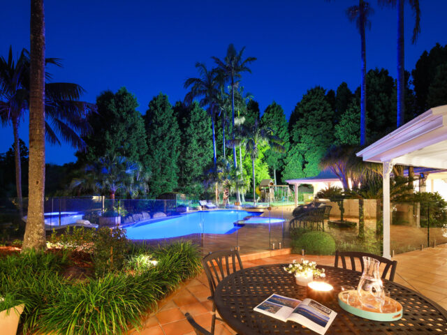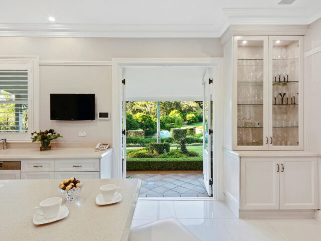 Privatised from the road, the home sits upon the crest of the property and is orientated to the north. It features immense wraparound verandahs and expanses of glass windows and doors that stream the interiors with light and promote cross ventilation. Every room enjoys a superb views of the immaculate surrounding gardens that calm and rejuvenate and were designed to burst into flower at all times of the year.