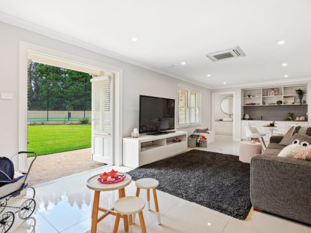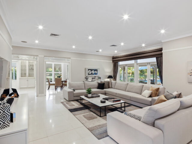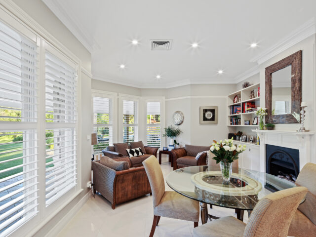 A suite of living spaces caters to every occasion and a varying family needs. These include a private formal lounge with gas fireplace, an immense family room and open plan lounge and dining with gas fireplace. Allowing the residents to set the mood, the home comes with a fully integrated Sonos surround sound system.
